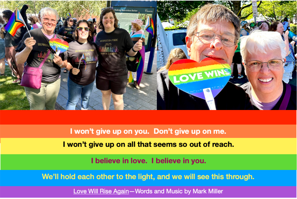 I hope for us to have those sanctuary places where people take our I-feel-like-giving-up-faces in their hands and look into our eyes until we believe. To find those millions of others who will grasp the arc of the moral universe with us till we start to feel it bend. For some, those places are in a community of faith, wherever and whatever that is for us. For some of us it’s on sacred zooms making plans for action and telling our stories. For some it’s in the halls of power or in the streets making good trouble. A few weeks ago we were sitting in our Bend UMC worship on a Sunday morning. The choir was singing Mark Miller’s Love Will Rise Again. I started listening to the words: “I won’t give up on all that seems so out of reach.” That’s the love that lines the trenches we fight in. “We will remember all the good we thought was gone.” These words describe the ferocious gratitude—the light that will see us through to systemic kindness, institutional compassion and Kindom of God on earth. I heard. And I cried. For the first time in many, many months, tears streamed down my cheeks and I wept. I had thought I was dead inside. Love wins my friends. Believe it. Weep for it. Not as hope. As fact. As now. In fact. Love wins. I print Mark Miller’s words for us in his song Love Will Rise Again. Go to the link and experience this song for yourselves: “As the sun rises, so will love. Voices are rising, so will love.” Go into the “fierce urgency of now” (MLK) and make love in fact. In our legend of faith, after Jesus wept, he raised his friend from death to life. If ever there was a time to rise with our human neighborhood, to rise from death to life, from hate to love, from tears to courage and with the weeping Earth, the time is now. Love wins.